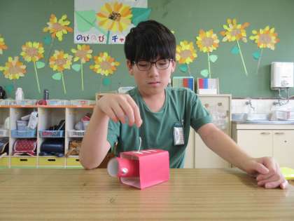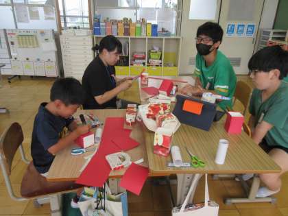 出来上がった「あかべこ」の頭の動きに合わせて、真似をして楽しんでいる子もいましたよ。