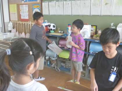 あまり話していない友達にも声をかけて、積極的にゲームに参加していました。