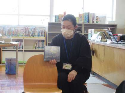 図書館司書の木曽先生に、「ひみつのはなび」という絵本の読み聞かせをしてもらいました。