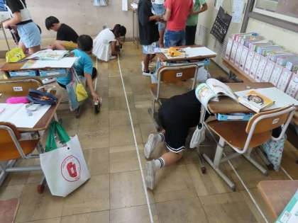 「長さ」巻き尺 算数の学習では「長さ」の単元に入りました。1学期には理科の実験で使ったことがありますが,子供たちが自分で長さを測るのは初めてです。「0」を合わせること、真っ直ぐに張ることを意識して使っています。