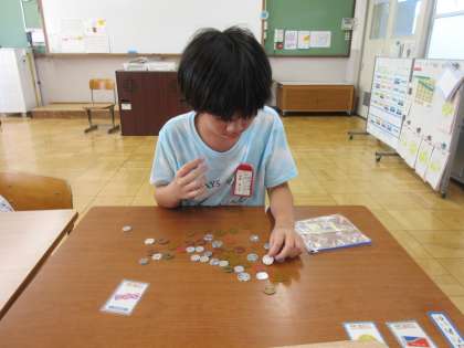 お菓子カードを見て、お金の出し方に迷っている友だちに優しく教えてあげる姿もありましたよ。