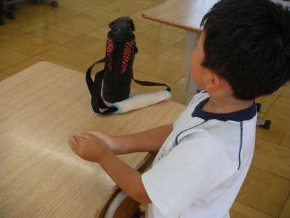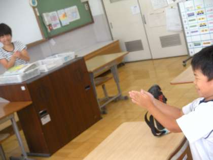 「バッタを捕まえるときはこういう手をするといいよ。」