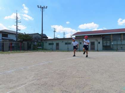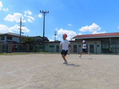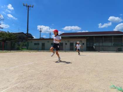 80メール走のタイムをはかりました。中学年から距離が伸びて運動会でも80メールをはしります。コーナーをうまく走る練習もしていきたいと思います。みんな水分補給を上手に入れながら頑張れました。