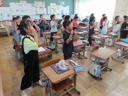 2学期の健康チャレンジが始まりました。まだ二回目なので少しUPテンポの曲に戸惑っていましたが、運動会ではノリノリの準備運動になっていることと思います。