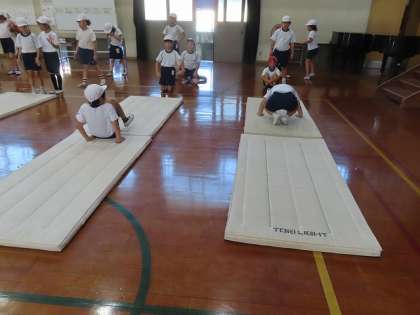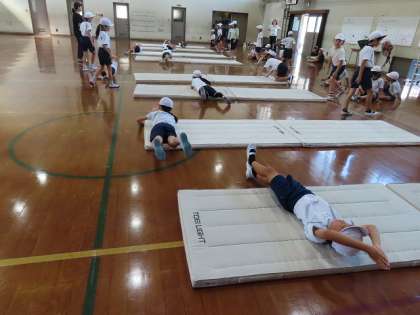 2年生での学習を思い出しながら、できる技を確かめました。友だちの上手なところも見つけながら楽しんで活動をしていました。