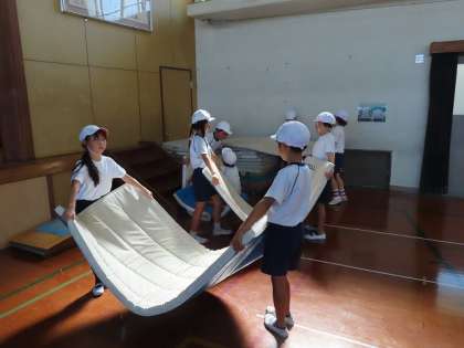 45分で準備、活動、片付けまでがんばります。みんなで協力いて片付けたマットは、ピシっとそろっていました。素晴らしいです。