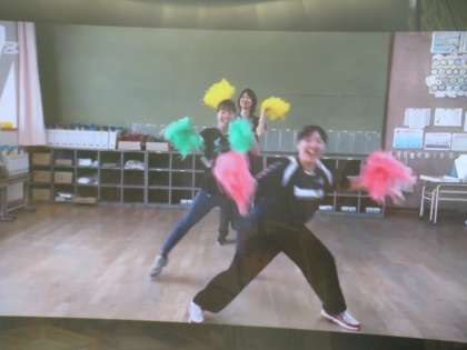 2年生が先生たちのお手本動画を見てノリノリでレッツダンス!!