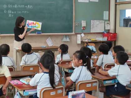 今日は、朝読書の時間に図書ボランティアの保護者の方に読み聞かせをしていただきました。自分の気持ちを色に表すと・・音に表すと・・みんな様々な感情や気持ちがあること、同じものを見たり、活動をしても感じ方や気持ちはちがうことにみんな穏やかな気持ちでお話を聞いていました。