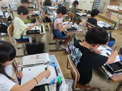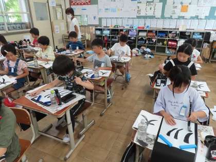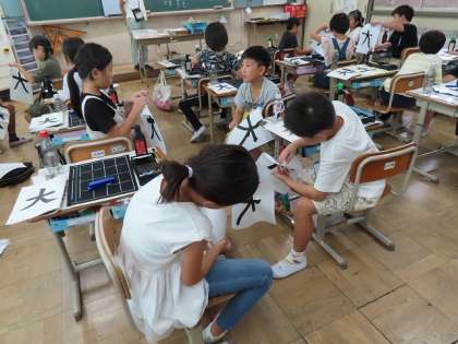 書写(習字)今日は、「大」の文字の学習をしました。はじめて「はらい」が入ってきました。どうしたらお手本のように書けるかを自分の書いた文字とお手本と見くらべながら書いていました。来週は、清書を書きます。