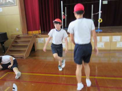 グループで選んだ8つの動きを、音楽に合わせてやってみました。