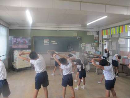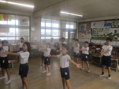 健康チャレンジのダンスを楽しく踊っています。