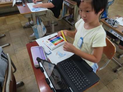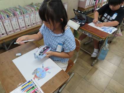 今年もお話の絵の学習に入りました。お話を聞いて自分の頭に浮かんだ、主人公や周りの様子を想像して書いていきます。どの場面にしようかと考えて、イメージした人物の下描きをしています。