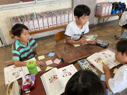 みんなが楽しく学校生活を送るためにはどんな係活動があればいいか、付箋に理由も書いて班で発表し合いました。