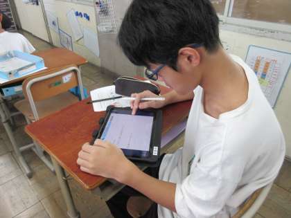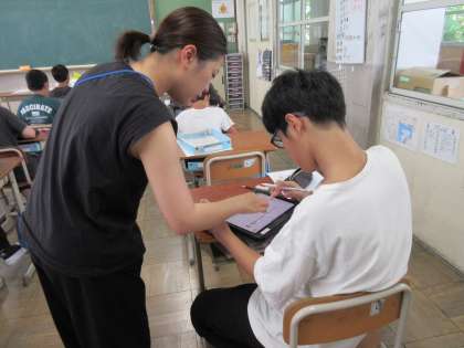 6年生が外国語活動の学習で書くことの学習をしていました。