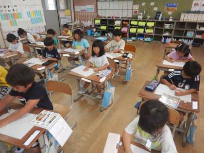 想像の世界を広げながら、お話を聞きました。どの場面を描こうか、楽しそうに考えていました。