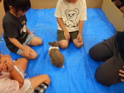 学校のウサギとのふれあいをしました。おとなしいので、ひざにのせたり、撫でたりできました。耳やしっぽや足の爪の様子をよく見ることができました。「かわいかったー!!」と大喜びでした。