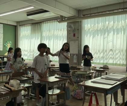 音楽の時間に体を動かしながら、音の高低を感じる授業をしました。