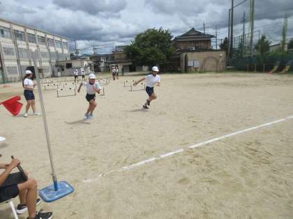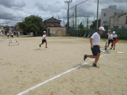 ハードル走をしました。3歩でまたぎ越すことを意識してみんなで走りました。