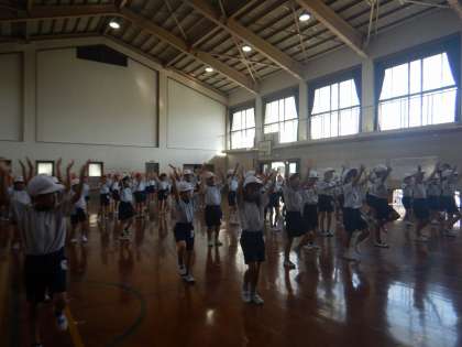 2年生と合同でダンスの練習をしました。本番を意識して、大きく動くことを頑張りました。かっこよくなってきました!