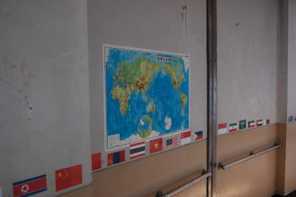 世界の国々の国旗を階段や廊下に掲示しています。2012年の来月7月には