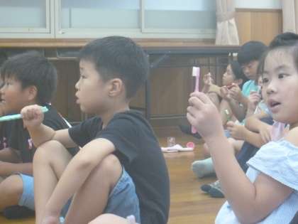 実際に歯ブラシをもって歯の磨き方を教えてもらいました。こんなふうに磨くときれいになるポイントをたくさん教えてもらいましたね!
