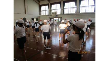 今日は、「ぼくのこと」の曲に合わせてのダンスの練習をしました。リズムにのって上手に踊る6年生を見て、5年生も刺激を受けて、表現に工夫が見られるようになってきました。