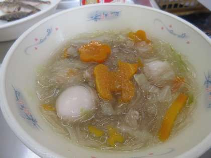 今日の給食に、タイピーエンが登場しました。中国の福建省で生まれたものがで、熊本県に伝わったそうです。