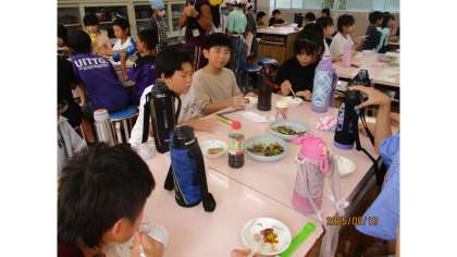 作った万願寺とうがらし料理を、さっそくいただきました。「おいしい」という声もたくさん聞かれましたが、「からい」「大当たりや」という声も聞かれました。