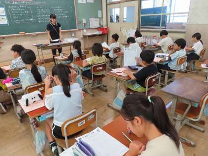 「保健」自分の生活リズムチェック表を見ながら健康に過ごすために1日をどのように過ごしたらいいかを考えました。また、なぜしっかりと睡眠を取る必要があるのかも教えてもらいました。