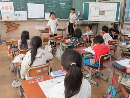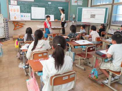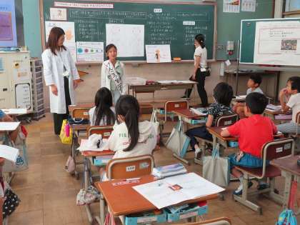 「保健」自分の普段の生活を見つめ直して自分ができることを「けんこうにすごし隊」として発表しました。子どもたちからは、「しっかりと石鹸を付けて洗い、流すときもきれいに流し切りたい」「1日使ったハンカチにばい菌がいっぱいついていたので、毎日きれいなものを使いたい。」「家に帰ったら汚れているシャツを着替える」などの意見が出ました。