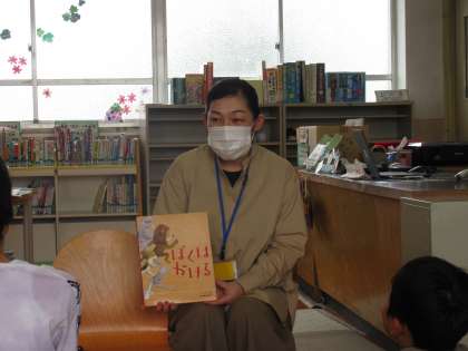 図書館司書の木曽先生に、「ぼくはかける」という絵本の読み聞かせをしてもらいました。