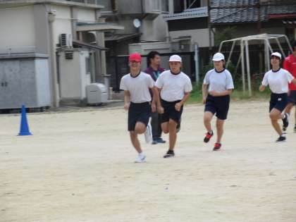 5・6年生が、運動場で隊形移動の練習をしました。