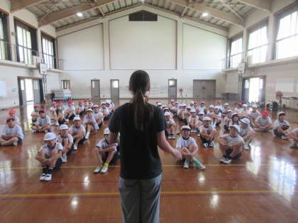 体育館でダンスの練習をしました。