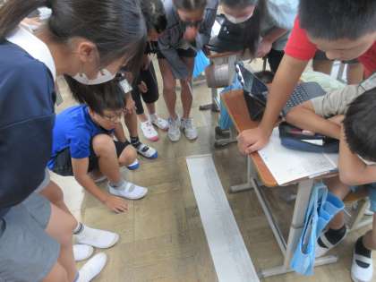 戦国時代の戦の数の年表を見てその数(長さ)に驚いていました。みんな年表の端から端まで見て、戦国時代の様子を想像していました。