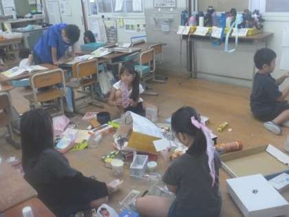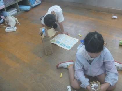 たくさんの材料を使って遊んでいくなかで、アイデアがどんどん思いついている様子でした。