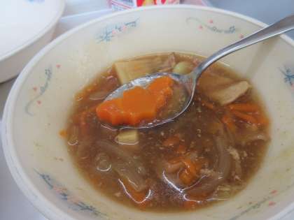 カレーあんかけごはんの具には、ハロウィンバージョンのハッピーキャロットが入っていました。