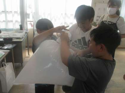 単元導入の様子です。袋を使って空気を閉じ込めました。