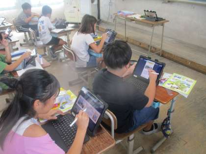 iPadを上手に使って、資料の読み取りをしている様子です。