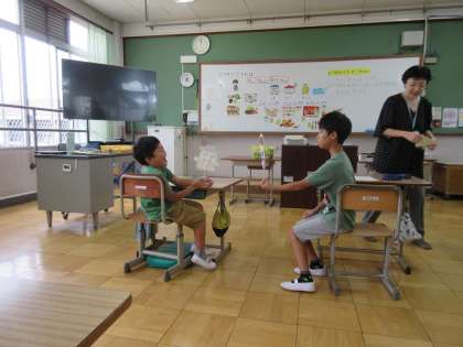 栄養教諭の北山先生による食の学習「けんこうちゃれんじ大さくせん」がありました。