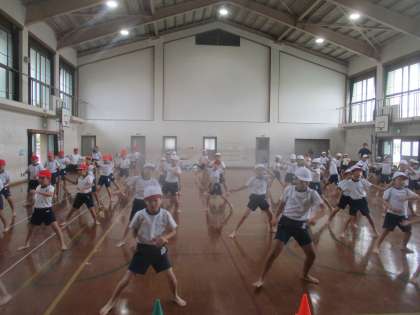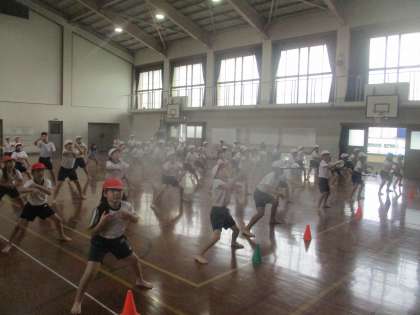 ソーラン節の練習風景です。体育館で細かい動きをしっかり確認しています。