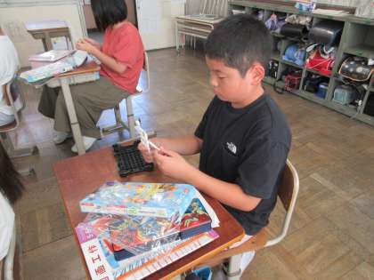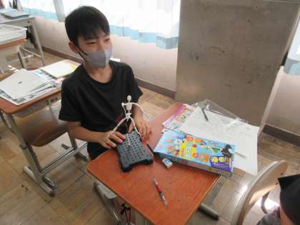未来の自分の姿を想像して、模型を使って、そのポーズを決めています。