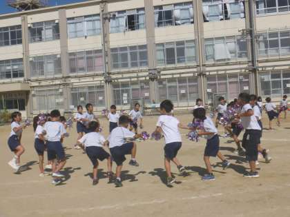 ダンスの途中でグループでエイエイオ—をしたり、各クラスが円になったりするところがあります!