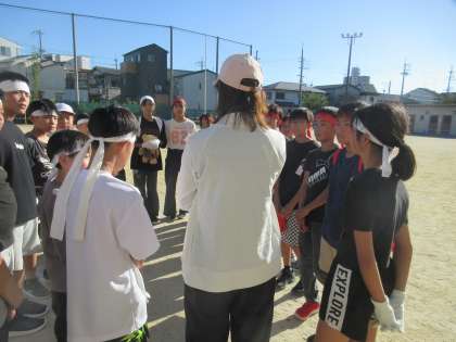 最後のまとめ。応援団長に明日への思いを話してもらいました。また、応援団担当教員からそれぞれの思いを話してもらいました。みんなで『心を一つ』にしました。明日の応援が楽しみです。