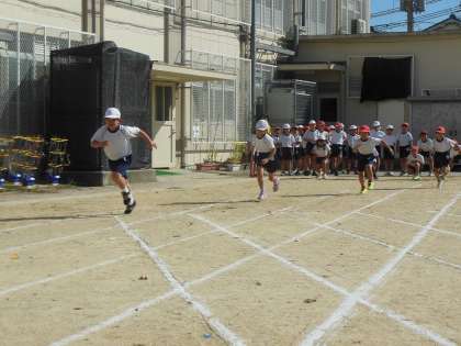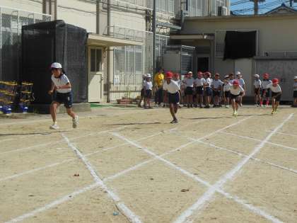 運動会、最初の種目は80m走!