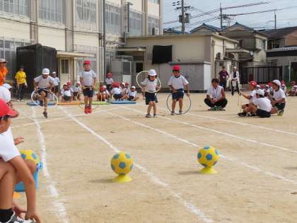 「出動、納所レンジァー」練習では、自分が苦手なところをがんばっていました。フープが上手に跳べるようになったり、シュートが一回で入ったりできるようになったことがたくさんありました。反対に今までできていたのに今日は上手くできなかったこともやり直し頑張ることができていました。