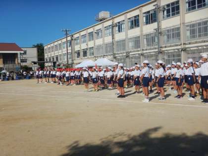 教室でみんなで「がんばろうね!」と心を合わせて、運動場へ行きました。
