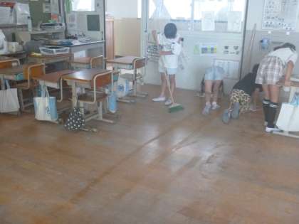 「机運んでいいよ!」「ここもお願い!」などと声をかけ合って掃除が進んでいきます。おかげさまで、きれいになりました。ありがとう!