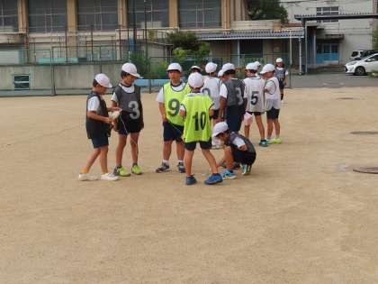 体育の学習ではエンドボールの単元に入りました。5〜6人のグループを作っての活動なので久しぶりに1、2組合同での活動が嬉しそうです。コート作りから友だちと協力しています。