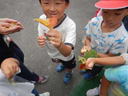 1年生☆生活科『あきとともだち』葉のこすりだし