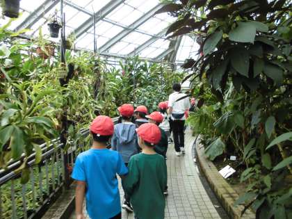 植物園の温室の中をぐるぐると回りました。植物のよい香りでいっぱいでした!